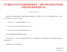 关于推迟2020年3月全国英语等级考试、全国计算机应用水平考试和 全国计算机等级考试的公告 以上公告来自河南省招生办公室官网,后续自考最新通知请继续关注 http://www.henandaxuezikao.com/...